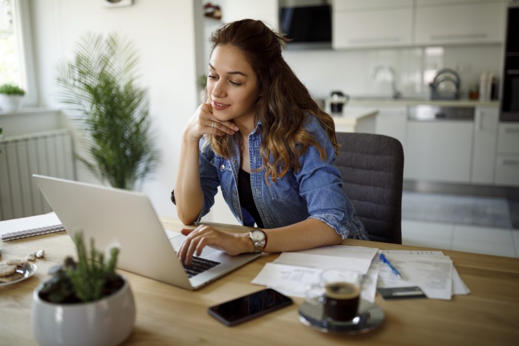 Senior man using computer and doing home finances at home